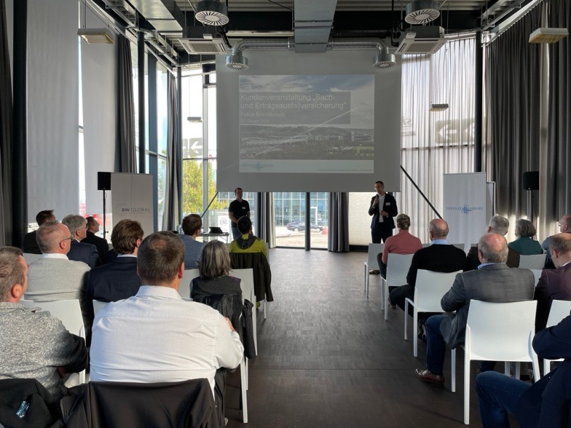 29. Oktober 2024 - Am 23.10.2024 fand unsere Kundenveranstaltung zum Thema Sach- und Ertragsausfallversicherung mit dem Schwerpunkt Brandschutz in der Motorworld Böblingen statt. Im stilvollen Ambiente des Terminal EINS fanden sich ca. 50 Teilnehmer zusammen, um über die aktuellen Entwicklungen im Bereich der brandschutztechnischen Anforderungen zu sprechen. Drei spannende Vorträge aus unterschiedlichen Blinkwinkeln gaben dabei wertvolle Impulse für den Alltag.