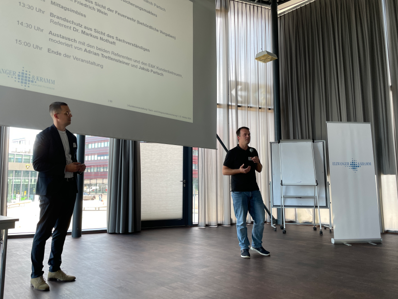 Unser hauseigener Risikoingenieur Jakob Partsch, machte dabei den Auftakt und berichtete über die aktuellen versicherungstechnischen Herausforderungen im baulichen und organisatorischen Brandschutz, auch anhand von praktischen Beispielen.